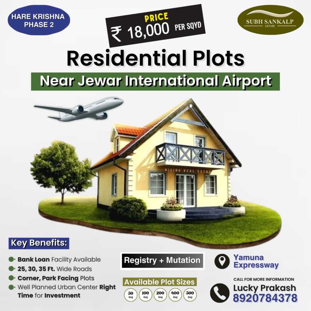 As of July 2025, the prices of Jewar plots in Hare Krishna Township is Rs.18,000 per square yard, depending on the location, size, and configuration of the plot.