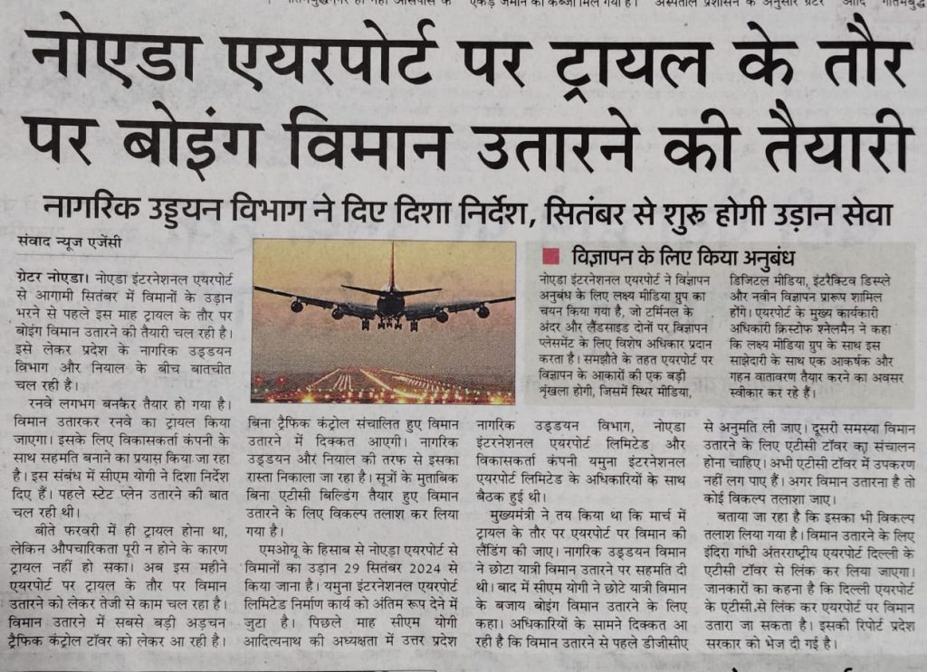 The first phase of the Jewar airport is expected to be completed by 2024, after which the airport will become operational.